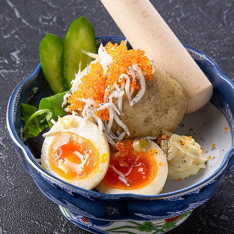ついついお酒が進むこと間違いなし!じっくり仕込みの「ヤミツキ味玉」、大人も子どもも虜になる危険なおいしさです!お客様の目の前で鉄板調理をする「とろニラ玉鉄板」などもおすすめです♪