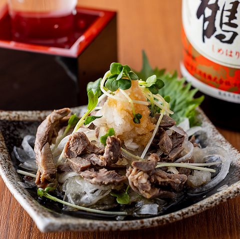 いっちょかみのタン塩は一味違う!厚切り牛タンを塩胡椒でじっくり焼き上げ。素材の旨みを丁寧に引き出した一皿です。牛タン以外にもゆでタンや肉刺しなど自慢の料理をご用意!お酒がついつい進むおつまみの数々をぜひご堪能ください!広々とした店内は落ち着いた雰囲気なので様々なシーンでご利用頂けます◎