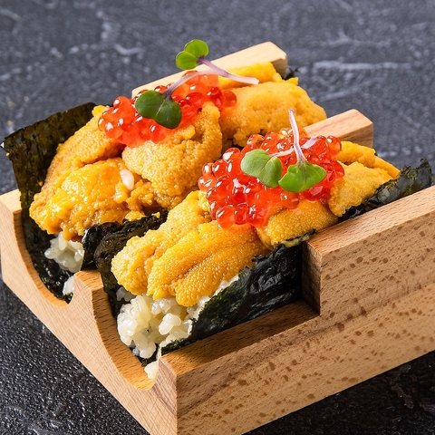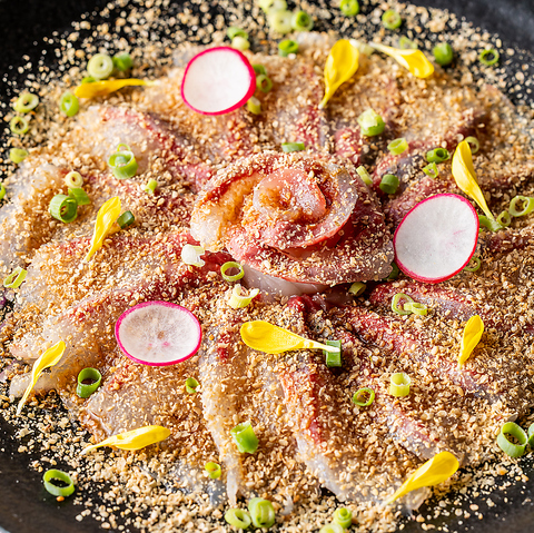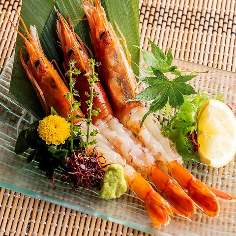 いっちょかみ自慢の新鮮な海鮮メニューは、彩り豊かで見た目も華やか。甘みと旨みが広がる「赤海老の醤油漬け」や「雲丹の手巻き」、「ごまカンパチ」などをご用意しております。お酒とともに、当店ならではの海の恵みをご堪能ください。