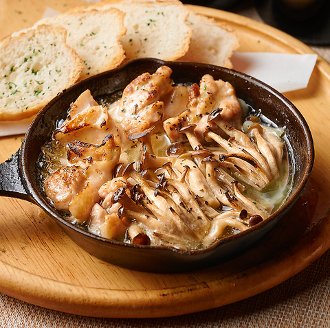 【オススメ】味わい深い地鶏とキノコのアヒージョ withバケット