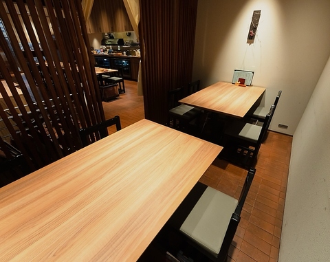 店内は落ち着いてお食事をお楽しみ頂ける情緒あふれる空間となっております。また、落ち着いた半個室もご用意しておりますので、大切な方とのお食事を気兼ねすることなくお楽しみ頂けます。その他にも女子会や各種宴会には半個室がおすすめ!周囲を気にせず安心してお食事・お酒をお楽しみいただけます