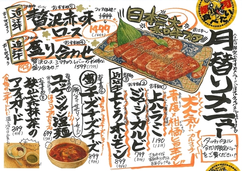 - (1)一般的に食肉の生食は食中毒のリスクがございます。(2)お子様、高齢者の方、その他食中毒に対する抵抗力の弱い方は生食をお控えください。※ホルモンは中までよく焼いてお召し上がりください ※お肉を焼くときはトングをご利用ください