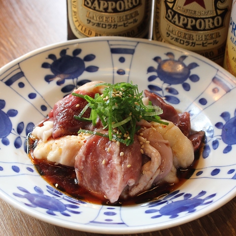 自慢のホルモン6種類を一皿の盛り合わせました。たくさんの種類を食べたいなら、まずこれを。