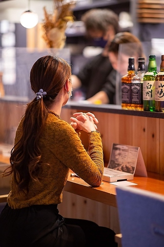 お一人様やデートにぴったりなカウンター席。お仕事帰りにお気軽にお立ち寄りください。