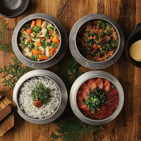 季節ごとに変わる旬の食材をふんだんに使い、一釜一釜丁寧に炊き上げる当店自慢の釜飯。炊き立てのふたを開けた瞬間に広がる豊かな香りと、旨みをたっぷり吸い込んだごはんの甘さが絶品です。素材の力をそのまま味わえる、究極の一碗をぜひ。