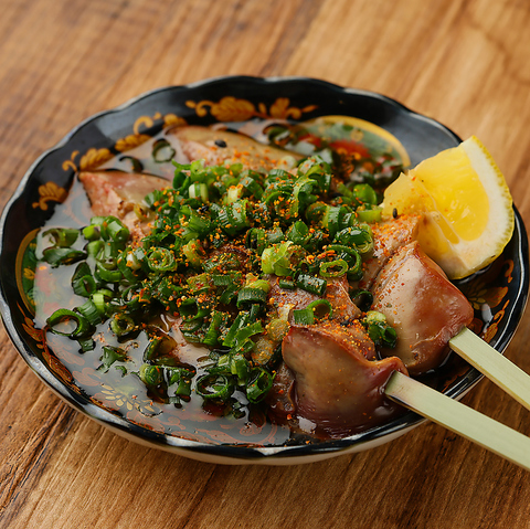 国産ブランドの「紀州梅鶏」は旨味とコクが強いことで有名な地鶏。当店では紀州梅鶏を朝引きし新鮮な状態でお客様に味わって頂けます。生肝と心と生肝炙り串の贅沢三種盛りやももたたき葱まみれなどお好みの部位をご用意! 【なんば/難波/焼き鳥/誕生日/居酒屋/デート/貸切/飲み放題/女子会/寿司/肉寿司/ランチ/串焼き】