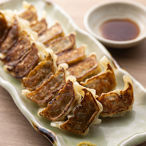 一口サイズでどんどん食べられる餃子は大人気商品!秘伝の味噌で味変して更に旨い!