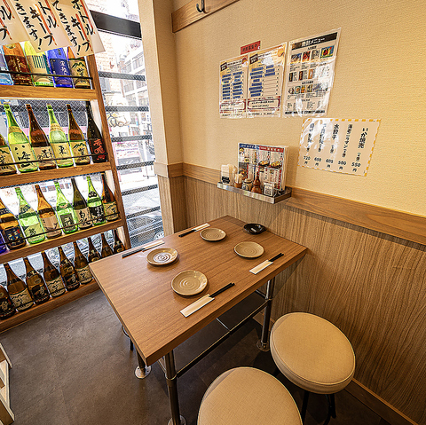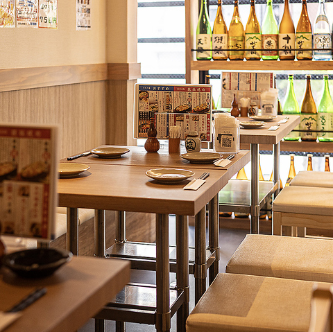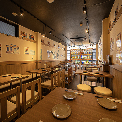 清潔感のある白木を基調とした店内は、壁一面にズラリと並んだ焼酎ボトルが圧巻!大衆酒場ならではの賑やかさと、木の温もりが調和した居心地の良い空間です。肩肘張らずにワイワイ楽しめるので、女子会やデート、会社の宴会など、どんなシーンでも会話が弾むこと間違いなしです。