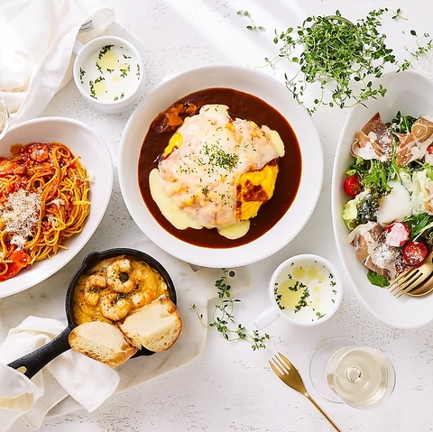 【ケチャップライス】ふわふわ帽子のオムライス/チョモランマオムライス+108円(税込)/チーズインオムカレー/【ピラフ】炭焼きチキンの照り焼きソースオムライス+108円(税込)/炭焼きチキンとほうれん草のクリームオムライス+216円(税込)/【和風ピラフ】明太とろろオムライス