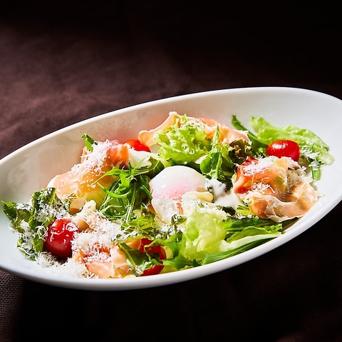 1:サラダまたは冷菜から、1品をお選びください※画像は生ハムと半熟卵のシーザーサラダ