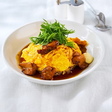 口の中にいれるとホロホロ...と崩れていく牛肉と黄金色に輝くふわふわの卵、肉や野菜が入ったケチャップライスの相性が抜群です♪オムライス好きにはたまらない一品です。※画像は一例です。