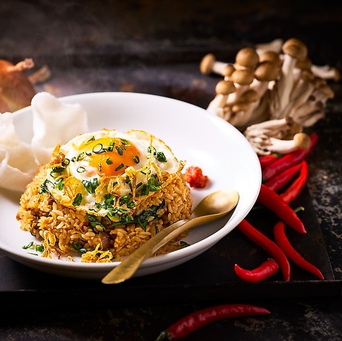 ナシゴレン※とても辛い生唐辛子添え/イカスミと博多明太子のピラフ