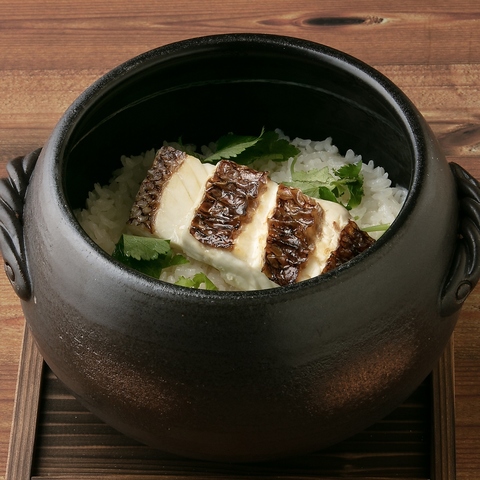 脂ののった鯛をほっこり自慢の最高級ブレンド米『翁霞』と一緒に炊き上げた名物の鯛めしは鯛の旨味がぎゅっと濃縮された自慢の逸品です