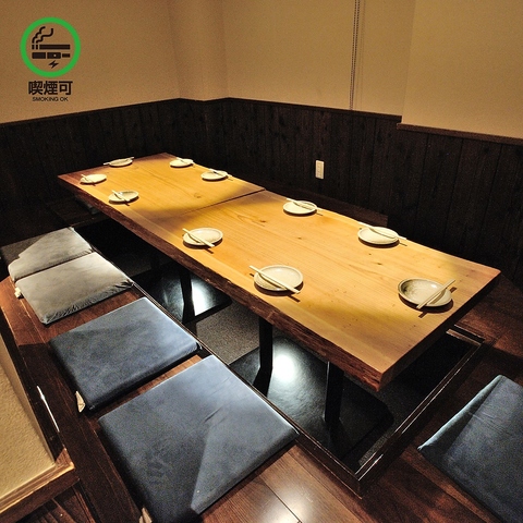 3名~最大10名様でご利用可能な堀ごたつ席ございます★5名様までのご利用の場合、半個室としてもご利用可能。ゆったりとお寛ぎいただえけるお席となっています。