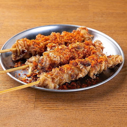当店の人気メニュー【名物 とり皮串】癖になるカリもち食感♪