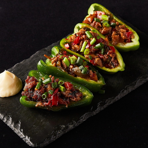 日本初上陸の【ポケットピザパラーター】は当店の看板メニュー♪タンドール釜でサクッと香ばしく焼き上げ、とろけるモッツァレラ&チェダーチーズや、苦みと歯ごたえがアクセントのピーマン&パプリカを包み、爽やかなミントソースをかけたまさに逸品。卓上のデスソースやキャロライナリーパーもお好みでご利用ください。