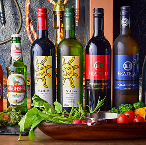 スパイス料理に合う珍しいインドワインや、厳選ワインをラインナップ!乾杯にはスパークリングワインも◎