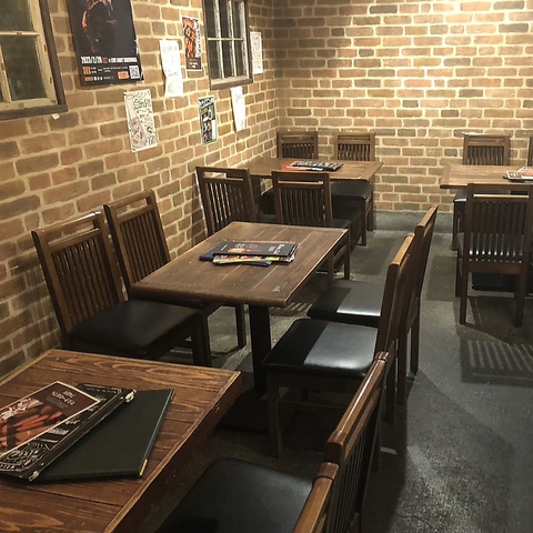 お洒落なレンガ調と木の暖かみを感じる店内。広々としたテーブル席をご用意しておりますので、ゆっくりとお過ごしいただけます。バーやバルってなんだか初めてだと入りにくい!というお客様にも気軽にご入店いただけるよう心がげております。