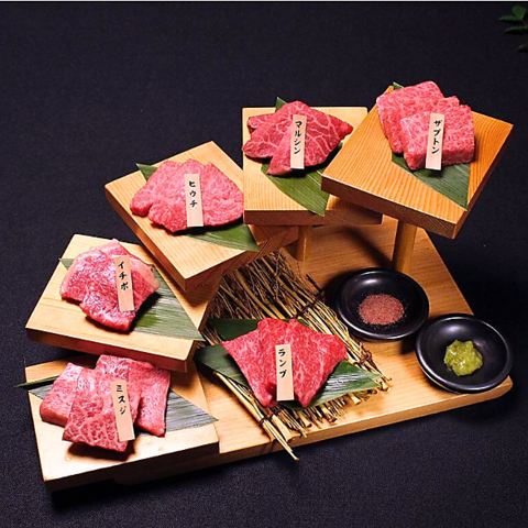 お肉の階段盛りは宴会で盛り上がること間違いなし!特選希少部位の階段盛り(2・3人前)
