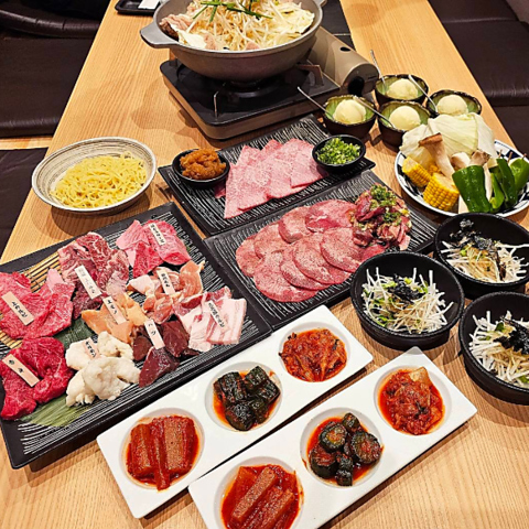 お料理のみ4700円(税込)/2時間飲み放題付き6500円(税込) 厳選焼きしゃぶや近どう名物 ホルモン辛鍋等全18品で、近どうがお届けする上質な焼肉を存分にご堪能いただけます☆