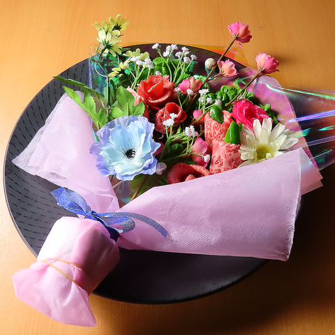 当店の肉ブーケは華やかでSNS映えも抜群◎お誕生日のお祝いや、記念日などに最適です!2750円(税込)です♪