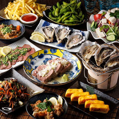 3時間飲み放題付きお得コースが多種類ご用意しております♪牡蠣×牛タンのボリュームたっぷりコースを4500円~ご用意しております♪満足いただけることまちがいなし!!