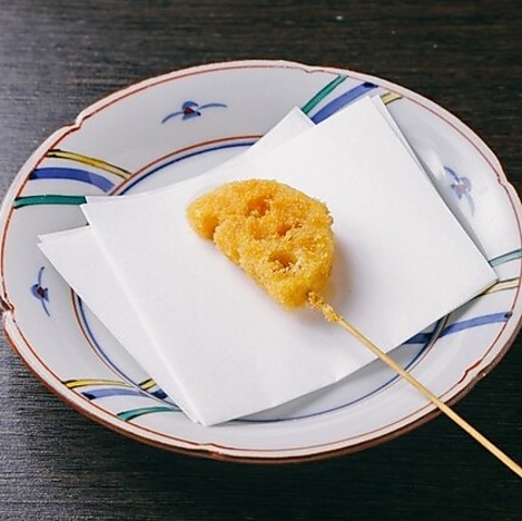 衣が軽くネタのバランスも絶妙な自慢の串カツ
