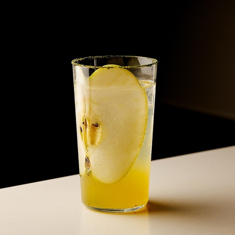 宇治抹茶とウイスキーにレモンを加え、ミルクウォッシュという技法で青リンゴの香りを引き出した爽やかな味わいのハイボール