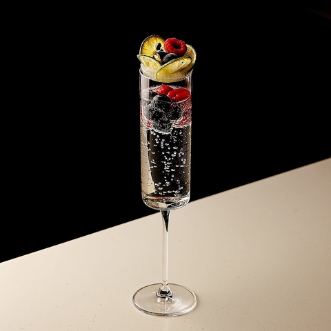 旬のフルーツにブルーベリー、ハーブが香るソースを注いだ見た目も美しいノンアルコールカクテル。