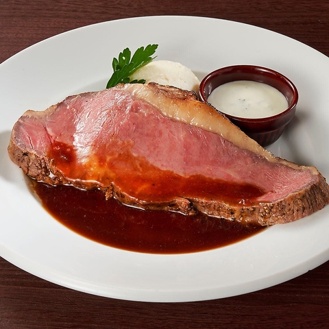 R.C.が自信を持ってオススメする牛サーロインのローストビーフは。じっくり低温で火を入れた逸品。芳醇なマデラソースが肉の旨味をより一層引き立てます。 150gカット 2,580円(税込)