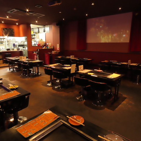 店内には大型のスクリーン画面があり映画館のような雰囲気でお食事をしていただけます。大画面スクリーンで映像等の鑑賞とご一緒に当店自慢のボリューム満点のお料理とお酒をご堪能いただけます。いつもと違った非日常の空間で、気の知れた仲間たちと愉しいお時間をお過ごしください。