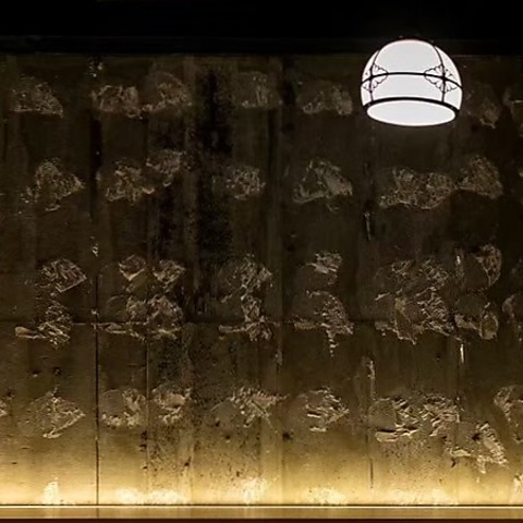 古い建物の躯体をそのまま活かし、壁をライトアップ。時間の流れを感じさせる特別な雰囲気を演出しています。