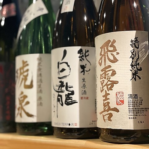 新鮮な鮮魚との相性を考慮し、全国各地から日本酒を厳選して仕入れております。すっきりとした辛口から飲みやすい甘口まで常時6種類あり、飽きずに楽しめるように週3回程のペースで銘柄が変わります。メニューにない日本酒や珍しいプレミアの焼酎もございますので、気になることがございましたら店員までお気軽にお声がけくださいませ。