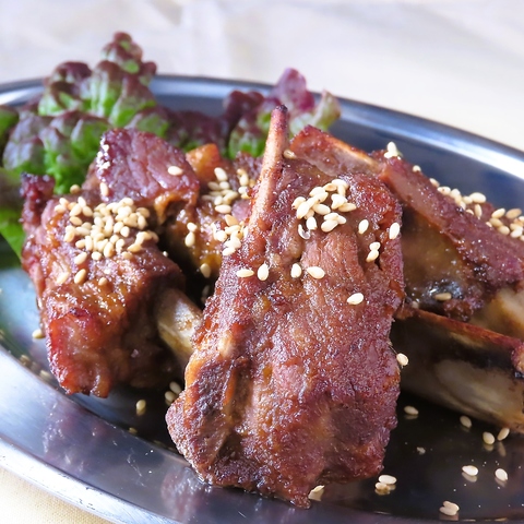 フルーティーな自家製タレに漬込みじっくりと焼き上げたBBQ風スペアリブです。コースをご注文のお客様にサービス中!(品切れの際はご容赦ください)