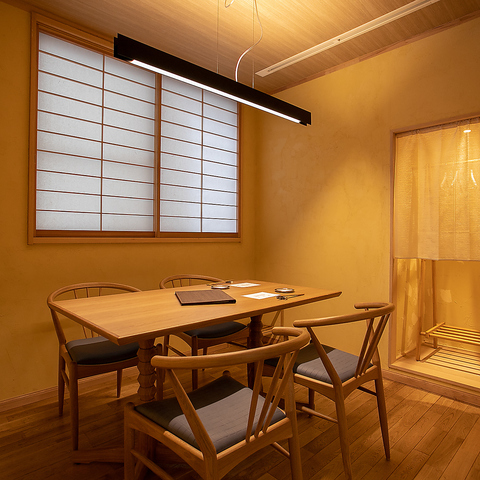4名様の完全個室をご用意。接待、記念日などにおすすめ。ご利用の際は事前にお電話にてご連絡下さいませ。