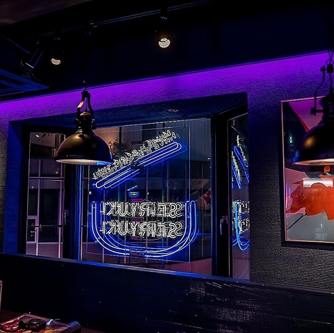 黒を基調としたシックな店内に、色鮮やかなネオンの光が煌めく、幻想的な空間が広がっています◎まるで韓国の夜の繁華街にいるかのような雰囲気は、SNS映えもばっちり!非日常感あふれる店内で、お食事とともに特別な時間をお過ごしください。