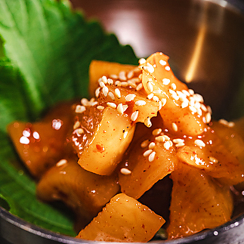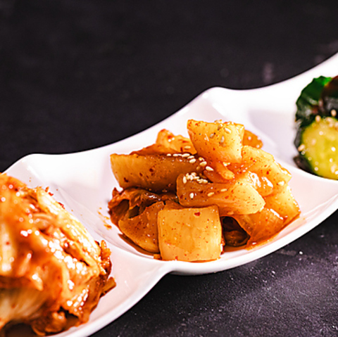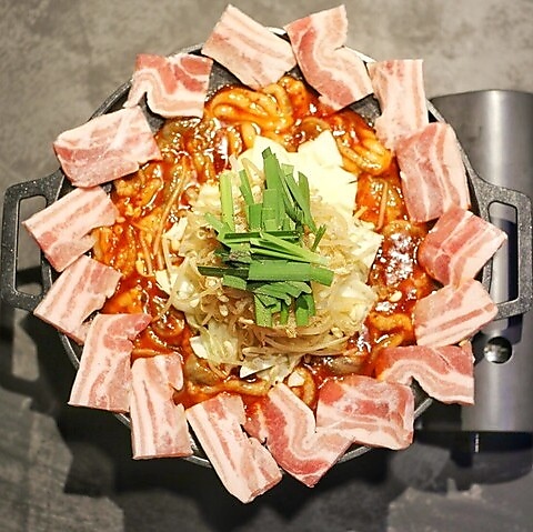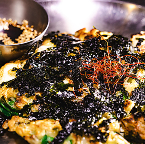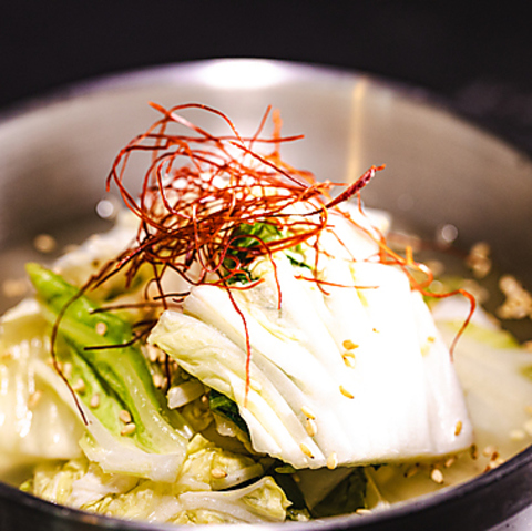 厚切りにされた豚肉は、香ばしい香りとともにテーブルへ。余分な脂を落としながらじっくりと焼き上げることで、外はカリカリ、中はジューシーな最高の状態でお召し上がりいただけます。特製のつけダレや新鮮なサンチュ、キムチ、ニンニクなどと組み合わせれば、さらに美味しさが引き立ちます。セリが付いたミナリサムギョプサルもおすすめです!