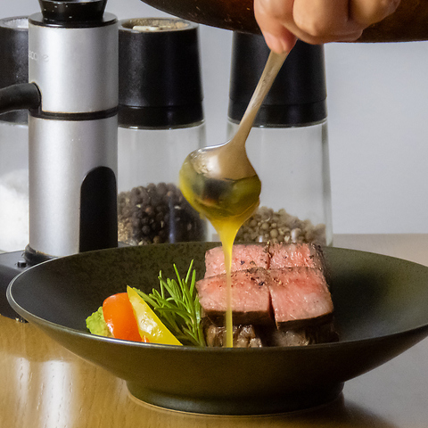 ランチでもディナーでも気軽に楽しめる、シェフこだわりの逸品ステーキ。柔らかくジューシーな肉質と、香ばしい焼き目が食欲をそそる一皿は、ボリューム満点で満足度◎。女子会・ご家族・宴会・記念日での利用にもぴったりです。