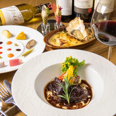 【特別な日のお食事や質にこだわりたい会食に◎】昼も夜も対応!メイン・前菜・温前菜をお好みで選べ、魚料理と選べるデザート&ドリンク付のコースです。