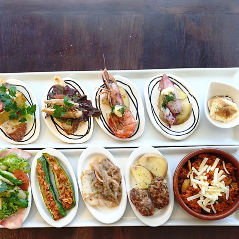 昼はパンを使ったタパスや小皿料理、夜はお酒とともにアヒージョやピンチョスをお楽しみいただけます。