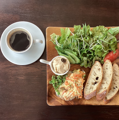 11:30からのランチメニューは、たっぷりサラダとエスプレッソマシーンで淹れたコーヒー付きでとってもお得