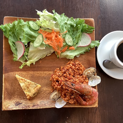 週替わりのパエリアにスペイン風オムレツ、サラダ、そして、コーヒーもついたお得なランチセットです。スープ、デザートも割引料金で追加OK ※このメニューは11:30以降となります。