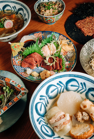 〈かつお・こんぶ・しいたけ・むろあじ・あじ・さば・いわし〉を煮込んでできた出汁は、『すっきりとしながらも上品な奥深い』味わいです。鍋に火を着けた状態でご提供するので、透明な琥珀色のスープに浮かぶおでんの具は最後まで温かいままでお召し上がりいただけます。