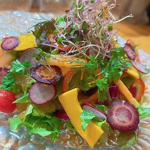 当店では健康的なお料理をご提供する為、新潟県産減農薬栽培米や千葉県産の新鮮イタリア野菜、長野県産フルーツと山菜等、可能な限り体に安全な食材を店主自ら厳選しております。また、その季節にしか味わえない旬の食材を使用しております。お料理から日本の四季を味わって頂けることも当店の魅力の一つです。
