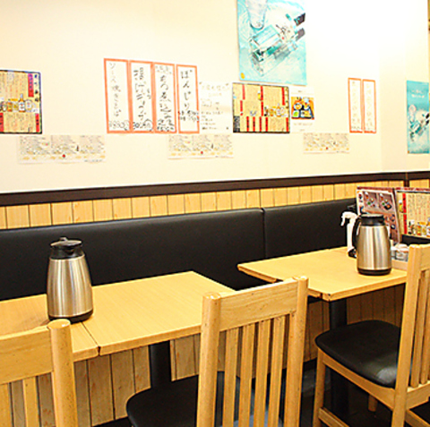 にぎやかで活気のある明るい店内は、繋げて大人数でも使用可能なテーブル席もご用意しております。様々なシーンで◎