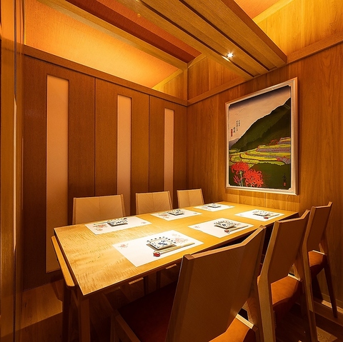 6~8名様でご利用いただける落ち着いた和空間。開放感のあり広々とした落ち着きある空間はどのようなシーンにもおすすめ。こだわりのお料理やお酒をごゆっくりとお楽しみいただけます。