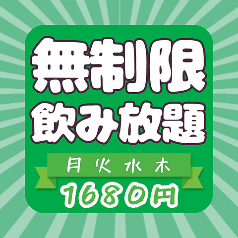 時間無制限の飲み放題!好きなだけ飲んで、仲間と楽しいひとときを。心ゆくまで満喫!宴会や飲み会に最適。