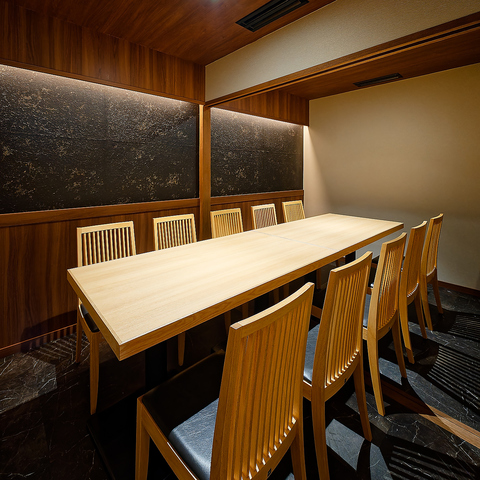 《完全個室》周りを気にせずゆっくりとお過ごし頂ける5名様~8名様向けの個室席は、落ち着いた和の雰囲気が漂う空間となっております。接待や会食などのビジネスシーンや誕生日、記念日のお祝いなど、大切な日のお食事もお客様だけのプライベートなお時間をお過ごし頂けます。