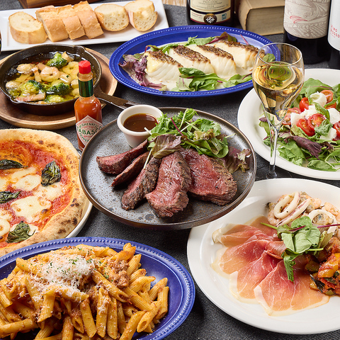 【忘新年会に最適◎ボリューム満点の飲み放題付コース☆】生ハム・鮮魚のカルパッチョなどの前菜から、チキンのオーブン焼き、牛筋のラグーンペンネまで!忘年会にぴったりの贅沢なメニューで、心温まる思い出を作りましょう。楽しい会話と共に、素敵な時間をお過ごしください。
