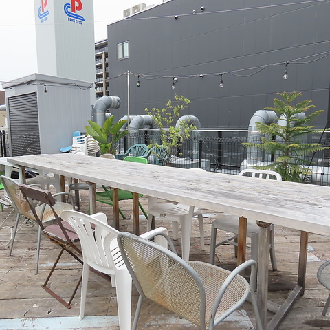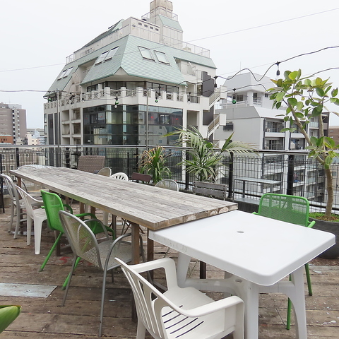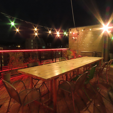 ビル5階に位置するあわヨクバ。の屋上!夜になると夜景も見れて雰囲気抜群♪ムーディーな大人の雰囲気。NET予約でのご予約が便利です。